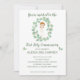 Invitación de Primera Comunión con motivos de eucalipto en acuarela de la colección ALEXIA