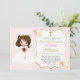 Celebre su día especial con esta elegante y romántica invitación floral rosa para su Primera Comunión. Diseñada con tonos suaves de rosa y delicadas flores, esta hermosa y sofisticada invitación para una celebración católica es perfecta para honrar el sagrado evento de su hija.