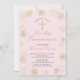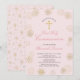 Celebra tu día especial con este hermoso diseño de invitación de primera comunión. Este diseño cuenta con un elegante marco dorado y cruz. Puedes personalizar todo el texto y el color de fondo.