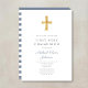 Invitación Primera Comunión Niño Cruces Rayas Azules Moderna