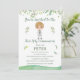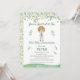 Invitación de Primera Comunión de la colección PETER, bellamente decorada con hojas de eucalipto. A juego con todos los artículos de esta colección. Tienes tazas, servilletas, platos de papel, bandejas, etiquetas, cajas y un montón de cosas más a juego para que no falte ningún detalle en la decoración de tu evento.