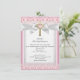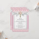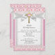 Invitación Primera Comunión Santa Chicas cruzan encaje rosado