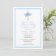 Perfecto para la primera invitación a la comunión de tu hijo, este diseño es simple y puro con una cruz azul claro acentuada por rosas azules en un fondo blanco, Debajo están tus detalles de celebración para que puedas personalizar en una tipografía moderna de escritura azul. Diseñado sólo para ti por la artista ©Susan Coffey.