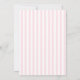 Invitación a la fiesta de primer cumpleaños de una niña princesa con temática de bebé hecha con un fondo de rayas rosas y blancas. Un área de texto con vieiras blancas tiene gráficos de una princesa chica, un entrenador y una corona rosa. Personalice todo el texto para el día especial de su bebé.