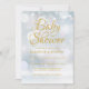 Suaves copos de nieve caen a través de tu shower de bebé neutral, detalles de shower de parejas o sprinkle, en elegante texto dorado sobre un fondo mágico de invierno.