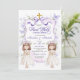 Gemelos Florales De Cinta Púrpura Primera Invitación A La Comunión Sagrada, Bow Morado Coquette Twin Siblings Primera Comunión Sagrada, Mariposa Púrpura Primera Comunión Sagrada