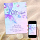 Invitación de cumpleaños de la sirena Fiesta de primer cumpleaños con mágica cola de sirena y tipografía con tema de sirena. El diseño tiene una cola de sirena y burbujas oceánicas en tonos acuarelas de verde y azul violeta. Fácil de editar y perfecto para fiesta de sirena, fiesta de piscina, princesa de niñas y temas bajo el mar.
