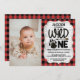 Invitación Primeros cumpleaños de Rustic Forest Plaid Bear Pa