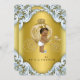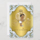 Agradable bebé azul y oro de la etnia india hispano-americana princesa africana prince baby ducha invitación con adorable príncipe étnico usando una corona de oro en un fondo dorado y azul giratorio. Esta adorable invitación a la ducha de bebé de príncipe azul y dorado se personaliza fácilmente para tu evento añadiendo los detalles de tu evento, estilo de fuente, tamaño de fuente y color, y redacción.