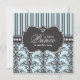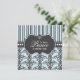 Elegante damasco negro y diseño de rayas en un fondo azul bebé hace un diseño encantador con un toque francés adecuado para un principito. Esta invitación permite a los huéspedes saber que el querido grupo de alegría en el camino es un niño dulce y celebra su llegada al estilo de la moda.