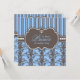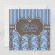 Elegante damasco negro y diseño de rayas en un fondo azul bebé hace un diseño encantador con un toque francés adecuado para un principito. Esta invitación permite a los huéspedes saber que el querido grupo de alegría en el camino es un niño dulce y celebra su llegada al estilo de la moda.