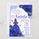 Invitación al cumpleaños de Quinceanera floral azul real