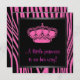 Invitación Princesa Crown Hot Pink Zebra Baby Shower