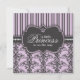 El damasco elegante y las rayas negros y púrpuras hace un diseño precioso con una sensación francesa que se quepa para una pequeña princesa. Esta invitación fija la etapa para el paquete querido de alegría y de su mamá que se celebrarán en una fiesta de bienvenida al bebé elegante.