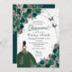 Invitación al cumpleaños de la princesa de mariposa verde esmeralda y plateada Quinceanera