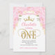 Princesa, Rosa, Purpurina de Oro, Chica Invitación por el primer cumpleaños