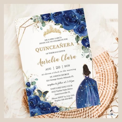 Invitación Princesa Floral Azul Real Quinceañera 15 cumpleaño