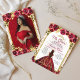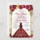 Invitación Princesa Floral Roja Arco de Oro Foto Quinceanera