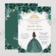 Invitación Princesa floral verde esmeralda de la moda Quincea