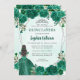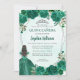 Invitación Princesa Floral Verde Esmeralda Tiara Quinceañera