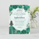 Invitación de la princesa floral de Purpurina verde esmeralda Tiara Quinceañera