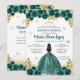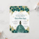 Moderna princesa verde esmeralda floral florida vestido de corona de tiara mariposa Purpurina de oro Sparkle 15º cumpleaños Invitación Quinceanera