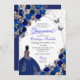 Invitación al cumpleaños de la princesa de mariposa azul y plata real Quinceanera