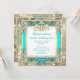 Invitación Princesa Quinceanera Oro Plata Verde azulada calie
