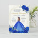 Invitación de la princesa real azul mexicana Quinceañera, floral Rosa azul, de oro Quince Tiara Chica mexicana 16º cumpleaños, Arco geométrico, dulce 16º Chica de cumpleaños de Quinceanera