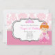 Invitación Princesa Rosa Pelo Rojo Damasco y Perlas