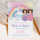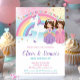 Whimsical Twins Princess y la invitación a la fiesta de cumpleaños Unicorn, con un unicornio arcoiris y hermosas princesas. Personalice esta impresionante invitación a la Princesa y a la fiesta de Unicorn con los detalles de su fiesta de forma fácil y rápida, simplemente pulse el botón personalizar it para reorganizar y formatear el estilo y la ubicación del texto. Diseño exclusivo (c) El estudio Happy Cat. ¡Artículos coincidentes en la tienda!
