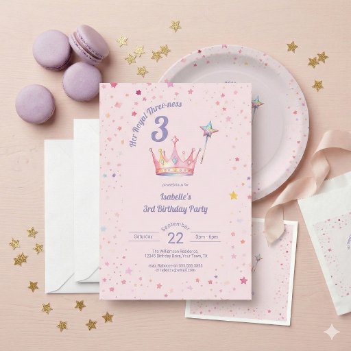 Invitación Princess Crown 3rd Birthday Her Royal Threeness