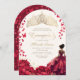 Invitación Princess Crown Red Floral Vestido Quinceanera