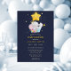 Invite a los invitados a una celebración estrellada con esta encantadora invitación de baby shower que presenta a un dulce elefante príncipe acuarela, adornado con una pequeña corona, anidado en una cesta floral suspendida por una estrella amarilla brillante. Contra un fondo azul marino profundo, este diseño trae un ambiente soñador de cielo nocturno que es perfecto para una ducha celestial o de cuento de hadas. Ideal para dar la bienvenida a un bebé, esta invitación mezcla colores vibrantes y elementos caprichosos que capturan la magia de una nueva llegada. Perfecto para padres que aman temas únicos de cuento que se sienten a la vez regios y acogedores.