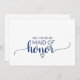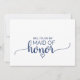 Esta carta de la marina, sencilla de caligrafía, es perfecta para una boda elegante. El diseño blanco y azul presenta una tipografía rústica de moda y un bonito corazón romántico. La parte de atrás está en blanco, por lo que dispondrás de mucho espacio para escribir una nota personalizada.