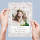 Invitación de propuesta de dama de flores con diseño de encaje. Incluye el texto editable "¿serás mi dama de flores?" y está personalizado con el nombre del niño y una foto.