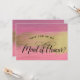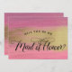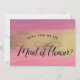Pídele a sus amigos y familiares que sean parte de su boda con esta moderna tarjeta "¿Serás mi empleada de honor?", con fondo abstracto rosa y dorado y elegante guión de caligrafía de moda "¿Serás mi empleada de honor? Personalice con su mensaje y nombre en la parte posterior.