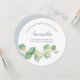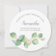 Elegante acuarela de la dama de honor o de la dama de honor en un formato redondo único encuadra sus detalles con un borde de hojas de eucalipto de color agua en tonos verdes. El tipo de letra se establece en un elegante tipo de sans serif tradicional y de script. Perfecto para bodas de primavera, verano, otoño, rústico o de jardín. Para ver más diseños como esta visita VG Invita a www.zazzle.com/vginvites