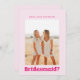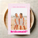 Proponga a sus damas de honor con estilo con esta tarjeta encantadora. El frente muestra tu foto favorita junto con la más sentida pregunta "¿Serás mi dama de honor?" La palabra "dama de honor" aparece resaltada en una letra atrevida y atrevida adornada con detalles adorables del corazón. ¡Haz que tu propuesta sea inolvidable!