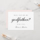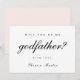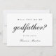 La tarjeta de propuesta de padrino simple y elegante presenta tipografía de escritura negra "¿serás mi padrino?". Esta propuesta de padrino tiene un estilo minimalista y moderno en negro y blanco, con un color rosa suave editable en la parte posterior de la tarjeta.