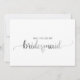 Esta sencilla tarjeta de Relieve metalizado plateado caligrafía de dama de honor es perfecta para una boda elegante. El diseño brillante de plata presenta una tipografía de moda y un lujoso corazón metálico. La parte trasera está en blanco, por lo que dispondrás de mucho espacio para escribir un mensaje personalizado. Atención: este diseño no presenta un Relieve metalizado plateado real. Es un gráfico de alta calidad hecho para parecer un Relieve metalizado plateado.