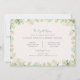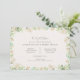 Elegante invitación a una boda floral con acuarela y detalles para el ensayo y la cena.
