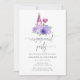 Boda floral acuático degustación de vinos invitaciones a fiestas de compromiso con colores del año 2018 ultra violeta con tonos violeta y verde sabio. Las flores incluyen hidrangea, lavanda, peonías y rosas.