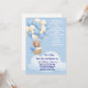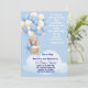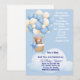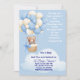 Celebrate the joyful arrival of your little prince with this boy baby shower invitation designed to be both sweet and meaningful. Featuring a charming teddy bear flying with multiple blue and white balloons, this invitation captures a sense of wonder, innocence, and happiness—perfect for welcoming a baby boy.