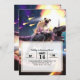 Invitación Pug montando dinosaurio unicornio en el espacio