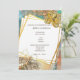 Con una hermosa mezcla de azul acuarela; naranja; tonos dorados y marrones falsos que se mezclan entre sí, una ilustración vintage de un pulpo de color mostaza amarillento que se arrastra a lo largo del lecho marino que tiene coral naranja y marrón bonito y lechos de arena de color dorado con burbujas vibrantes. Basado en un tema de criaturas marinas y náuticas, el fondo tiene tonos de tinta líquida rayada que se asemejan a las mareas y olas del océano sobre las cuales un marco geométrico dorado con un incrustado blanco tiene una plantilla para su declaración personalizada de la ocasión especial que está celebrando. Este diseño gráfico elegante y sofisticado es ideal para todas las ocasiones especiales bajo el mar; océano; costa y playa. Personalice las plantillas para adaptarlas a su evento.