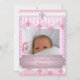 Invitación Punto blanco rosado fotograma cruzado bautizo