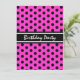 Invitación Punto de polka negro y rosado moderno de la fiesta