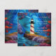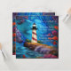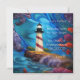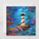 Hermoso faro de rayas rojas y blancas en un afloramiento rocoso rodeado de flores y agua/cielo azul Arte de IA creado por minx267
