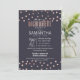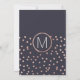 Elegante, moda y modernos puntos de polka oro rosa impreso en imitación y fondo azul marino, invitaciones de la Bachelorette Party. Este diseño clásico y sofisticado es perfecto para una Novia elegante, moderna y elegante. Personalice con su propio mensaje en la parte delantera y un monograma personalizado en la parte posterior. Todo el diseño de impresión fotográfica.